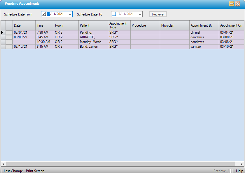 NOTE: The Appointment Sheet must be open prior to opening pending appointments and attempting to Confirm or Cancel a pending appointment.