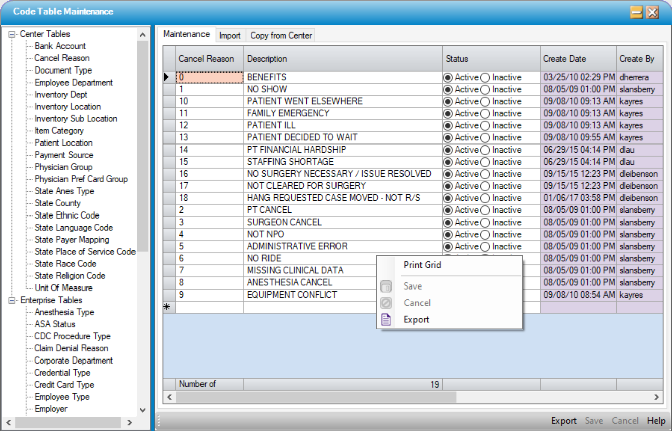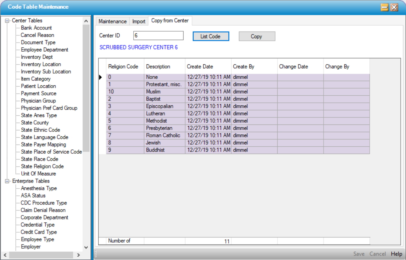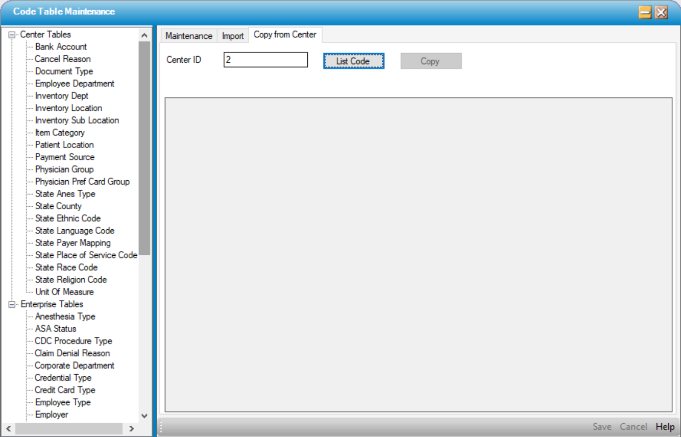 In larger organizations with more than one center on a database, centers may copy Code Tables from other centers.