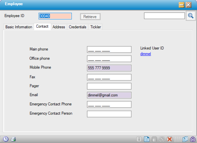 Mobile Phone | When a linked User Profile exists, this field will be Read Only. This data can only be updated from the User Profile form and can be synchronized up to the Employee Record. |