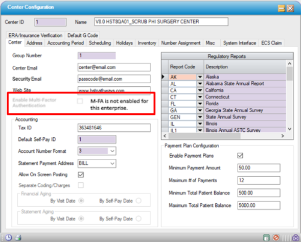 HST Support personnel can work with clients to enable Multi-Factor Authentication and determine the best configuration for the center’s Enterprise. These options only accessible by HST Support.