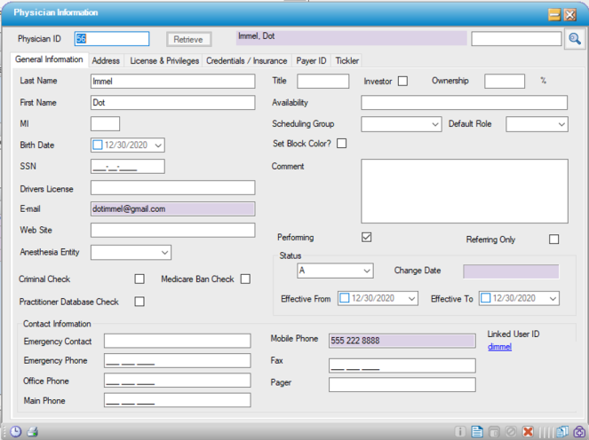 Linked User ID | This section to the right will display when there are liked User Profiles associated to this Physician record. |