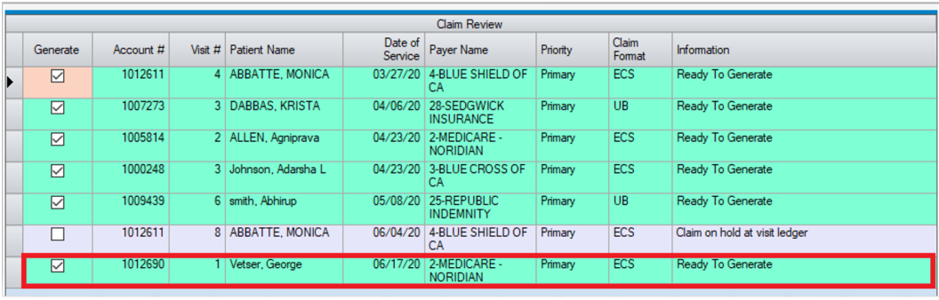 Only 66984 will appear on the secondary claim due to the “Bill Patient Only” setting in Charge Entry.