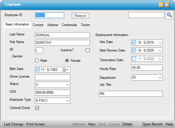 - Criminal Check - Check the box if a background check was completed on the Employee entered.
