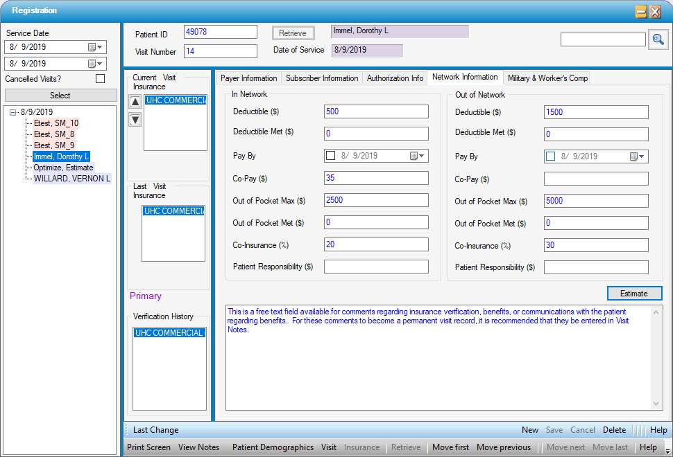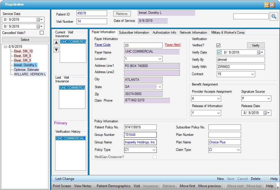 - If an eligibility request has been transmitted directly to the clearinghouse, there will be another box below the Last Visit Insurance box labeled Verification History that will list any payer for which insurance verification information exists Double click the payer name to view the eligibility response document.