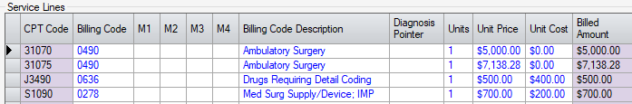 to pull them down to the Service Lines. Once procedural CPT codes have been entered on the Service Lines, select Load Inventory in the bottom navigation bar.