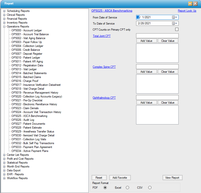 If this report is needed on a regular basis, set it up with the applicable CPTs in the filters and save it as a favorite.