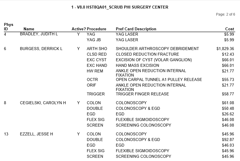 Summary preference card information, reads directly from Administration, Physician, Preference Card. Displays basic procedure and related supply cost by facility. Information also includes physician specialty and taxonomy code