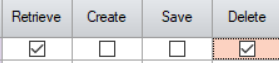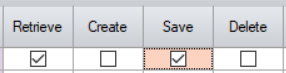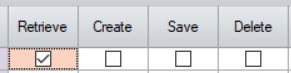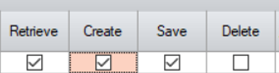 - Create allows adding a new record or saving an existing record. When Create is selected, Retrieve and Save are also checked by default.