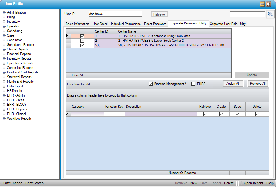 • Corporate User Role Utility allows User Roles to be assigned to one user in multiple centers without having to access each individual center.