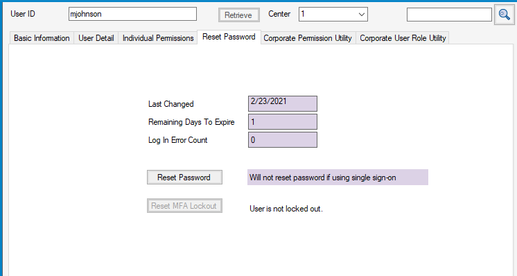 This button is only enabled if Multi-Factor Authentication (MFA) is enabled at a center this user has access to and their account is locked.